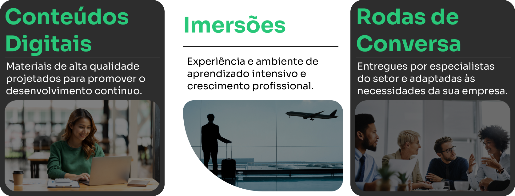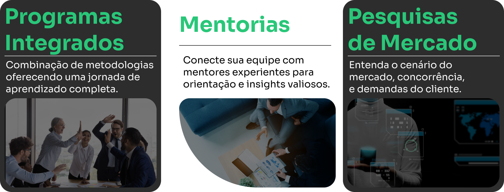 Soluções de educação e capacitação direcionadas à inovação, preparando profissionais e organizações para o futuro digital.